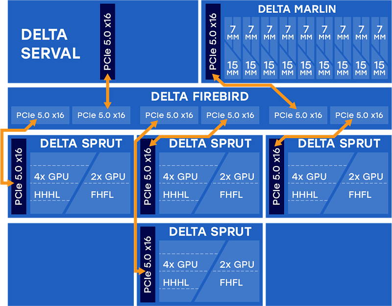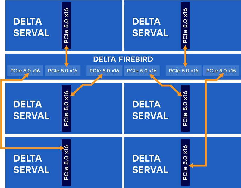 The Delta Firebird is a PCI Express switch that connects up to 6 devices. The composable and disaggregable PCIe module meets the needs of emerging data-intensive applications and enables dynamic resource allocation based on changing workloads.