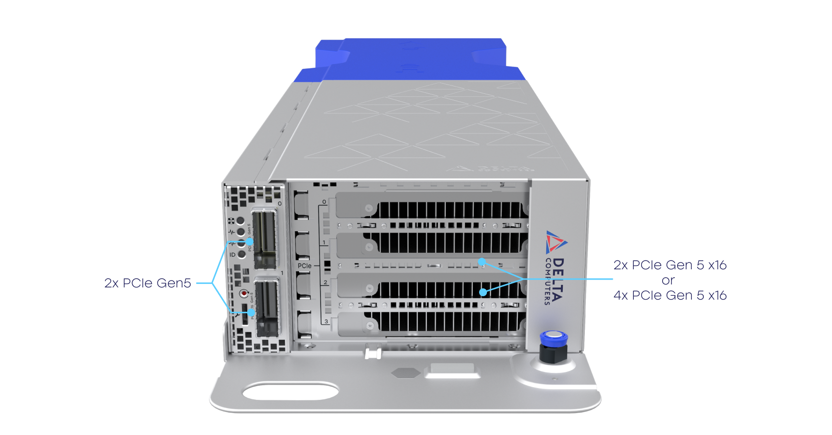 - Possibility of installing up to 10 NVIDIA H100 accelerators or up to 20 HHFL adapters, for example, NVIDIA L4/A10