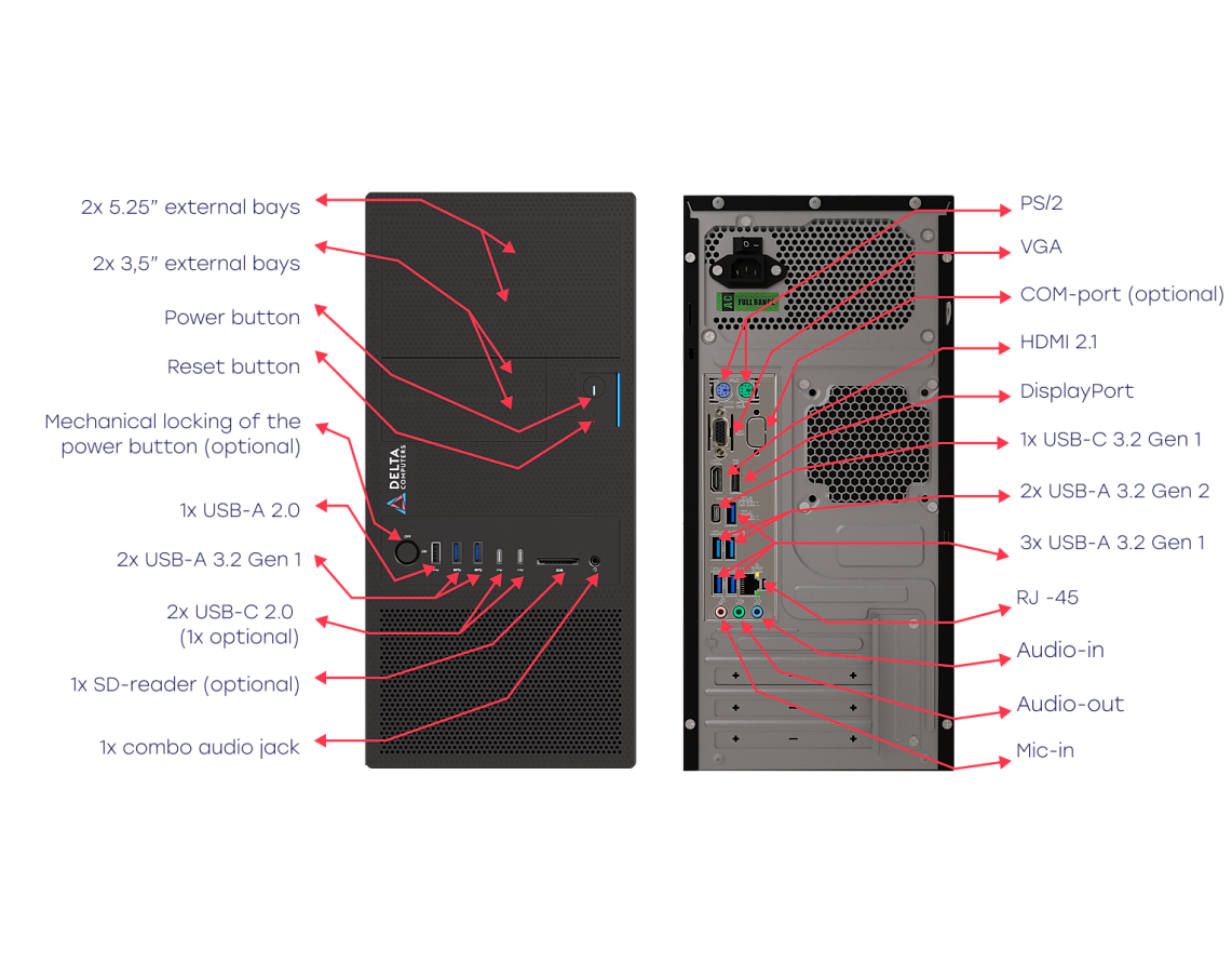 - External bays: 2x 5.25”, 2x 3.5”