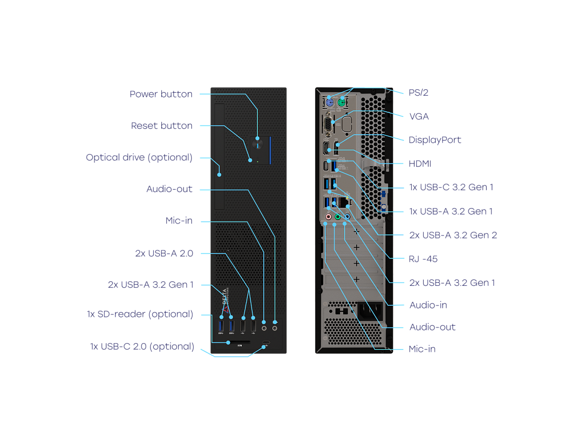 - HDMI, VGA and DP graphics ports